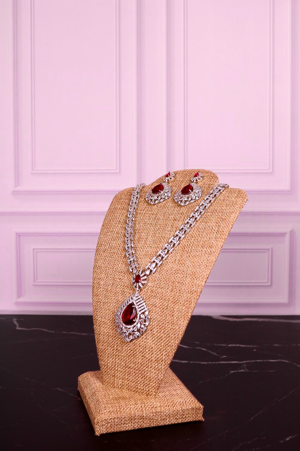 Red Ruby Jewerly Set - Necklace and Earrings