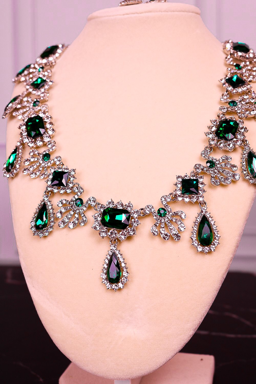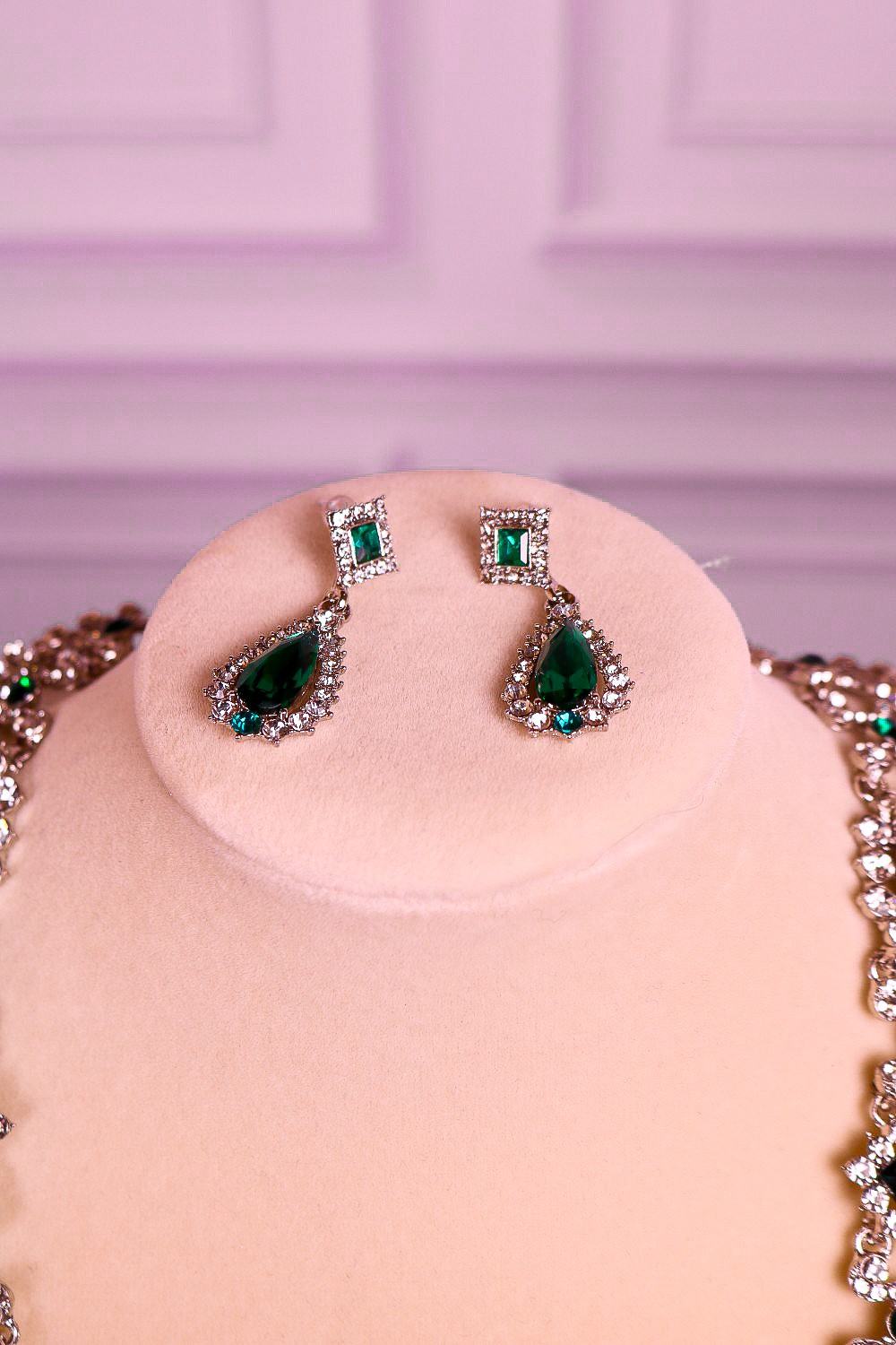 Emerald Crystal Jewerly Set - Necklace and Earrings